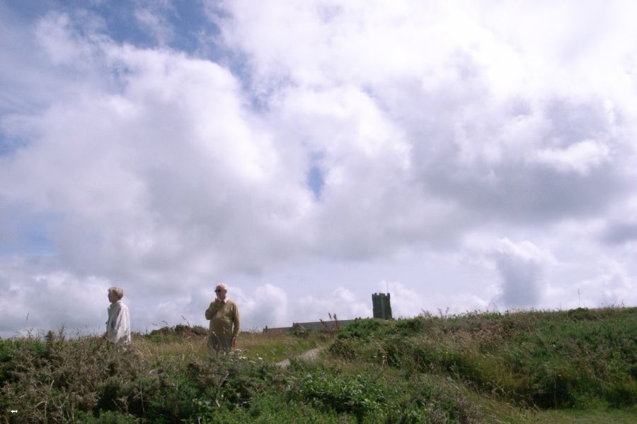 Hazel and Geoff at Tintagel. A spire is never far behind